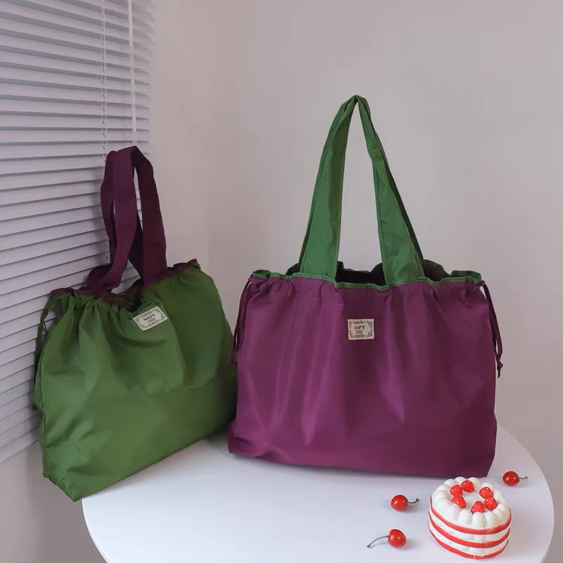 ✅ [SG] Foldable Grocery Bag/ Large Capacity Travel Shopping Folding Bag/ Foldable Drawstring Nylon Tote Bag
