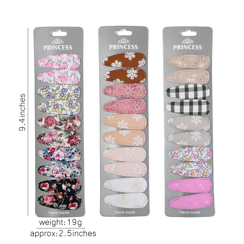 10Pcs/set 2.2inches Printed Waterdrop Shape Hair Clips for Cute Girls BB Hairpin Barrettes Headwear Kids Fashion Hair Accessories