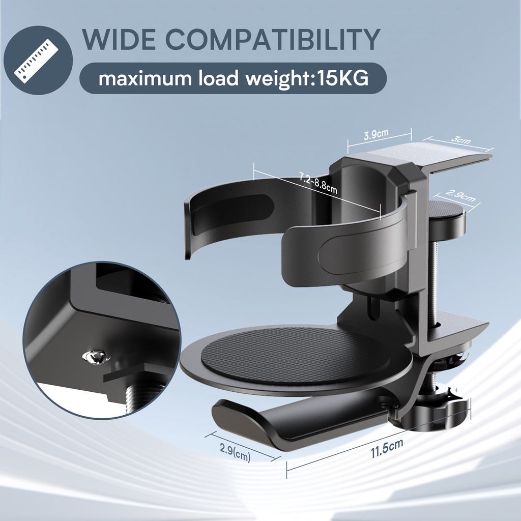 360 Aluminum Alloy Metal Gaming Display Under Desk Table Drink Cup Headphone Headphone Hook Bracket Installation