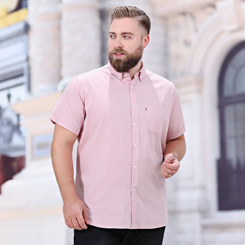 80-175KG PLUS SIZE Men Cotton Large Size Business Short Sleeve Casual Solid Color Wedding Shirt