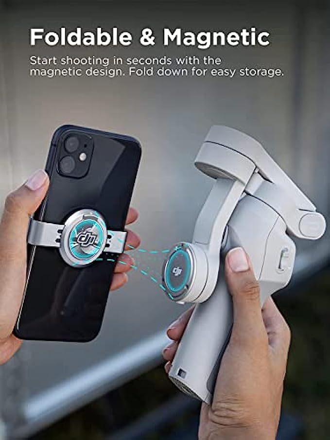 • Feel the Pull - Instantly attach your smartphone to the DJI OM 4 SE gimbal stabilizer and enjoy perfect filming on the go. This gimbal stabilizer for smartphones uses a magnetic design for fast, easy phone attachments, letting you capture smooth and creative footage whenever inspiration strikes.