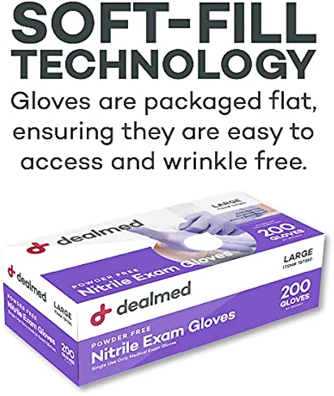 EFFICIENT PACKAGING – Soft-Fill Technology dispenses the medical examination gloves with unwrinkled ease because they are packaged flat. This allows for more efficient and expedient use when you need to grab a pair of sanitary disposable gloves.
