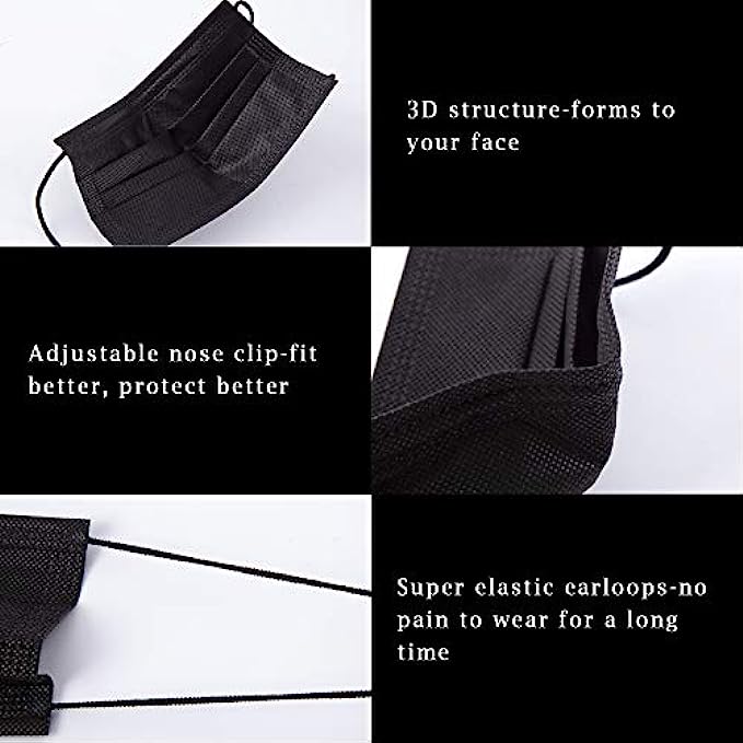 non-woven Masks made of 3 layers of high-quality non-woven fabric which is more breathable Our disposable face masks are suitable for adults and teenagers These face masks can be used for daily protection, but should not be used in surgical or high risk situations 100 pieces Great for dust-free workshops, schools, catering services, food processing, environmental cleaning, production workshop, public occasions, etc.