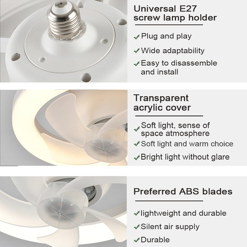 E27 Screw MINI Ceiling Fan With Light 360° Rotation Ceiling Fan Exhaust Fan in Kitchen/Toilet Electric Fan