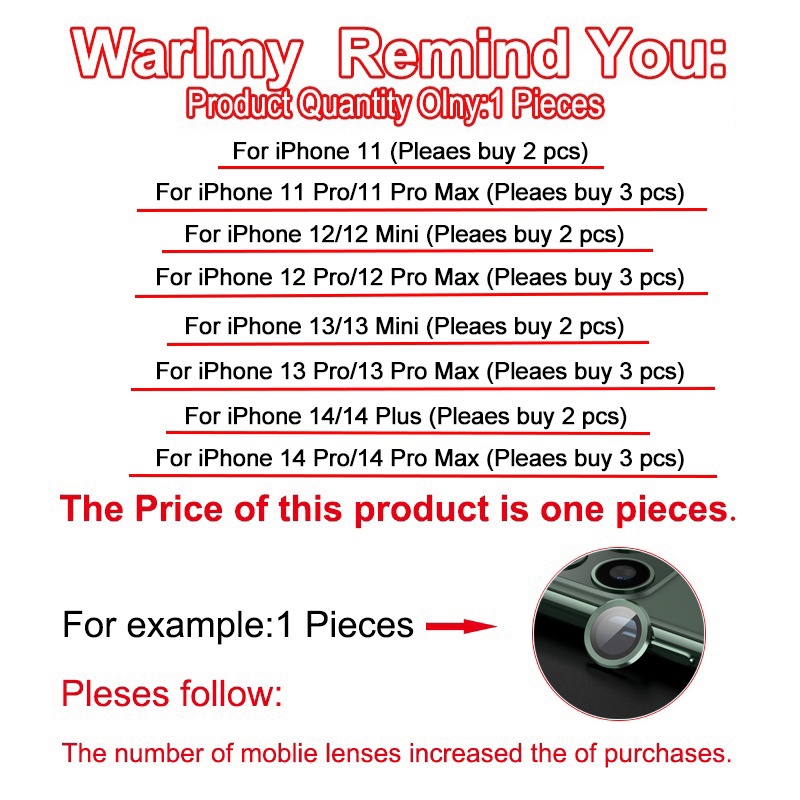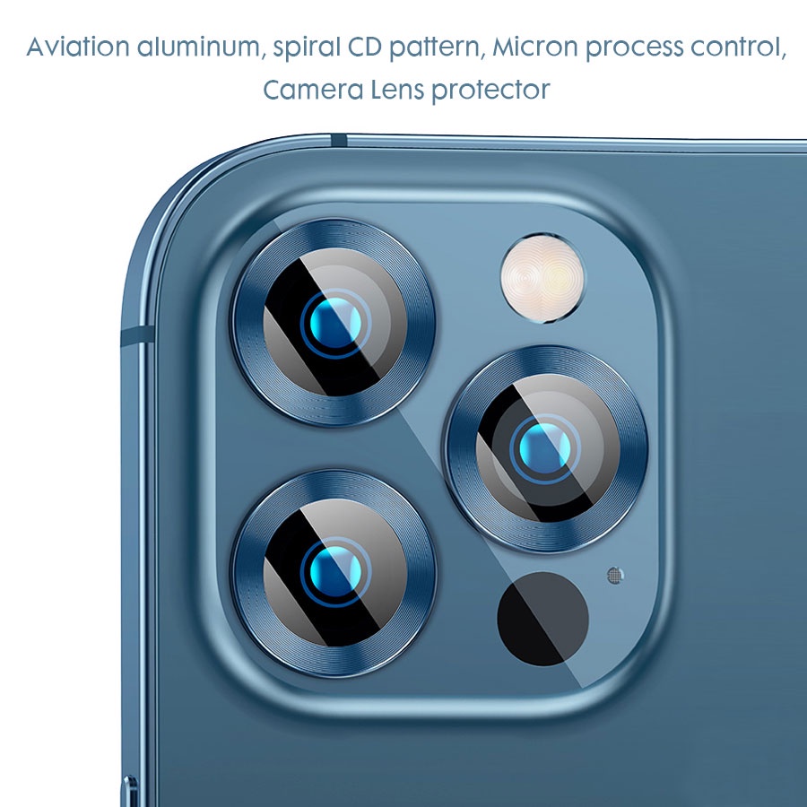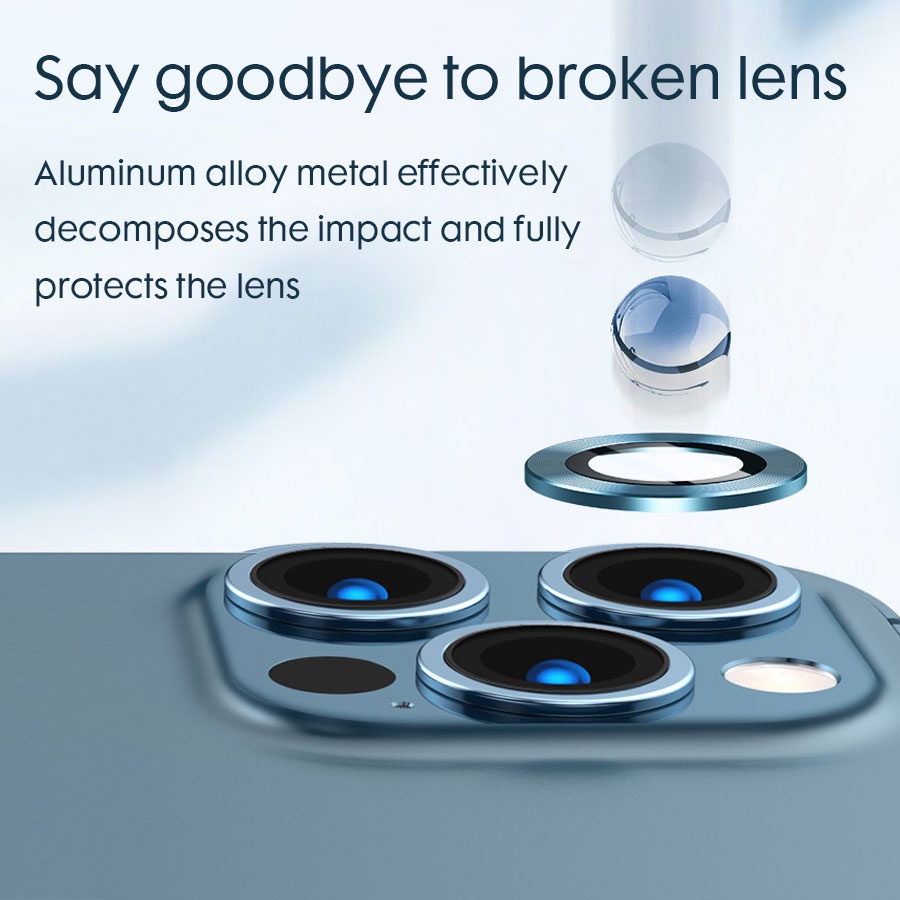 For iPhone 11 12 13 14 Pro Max / 14 Plus Rear Camera Lens Metal Protector Ring With Tempered Glass