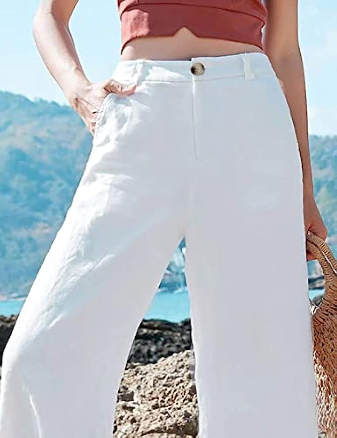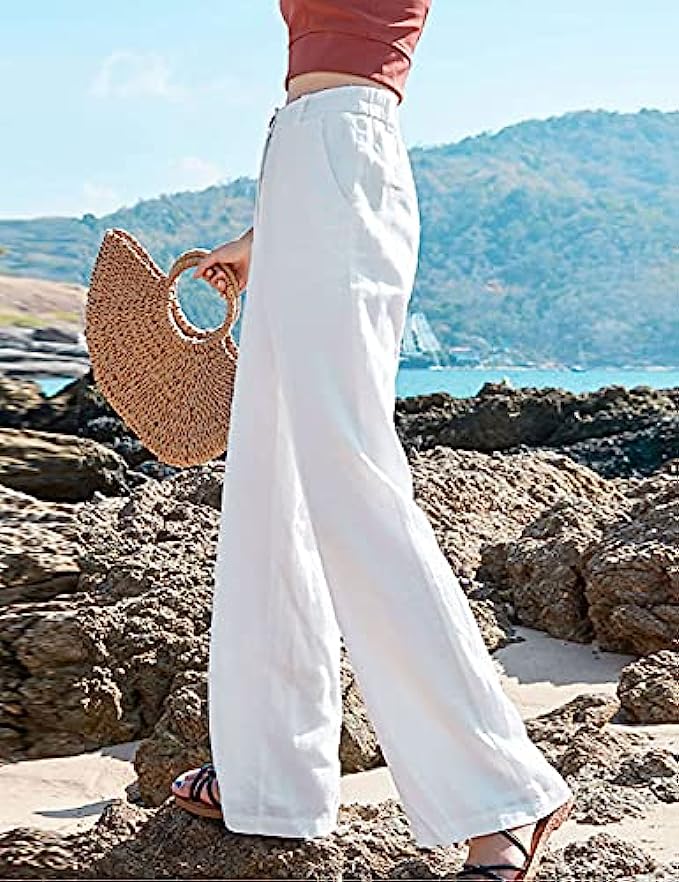 49% Rayon, 42% Polyester, 6% Nylon, 3% Spandex Imported Button closure Drape design, straight pattern Front button and back elastic, suitable for all shapes and sizes Fashion comfy solid high waist long pants, beach button down pants Suitable for any seasons date office school travel hiking and home Attention: The pants are more flowy drape and skin-friendly after washing, and the color may be slightly different due to the shooting light problem