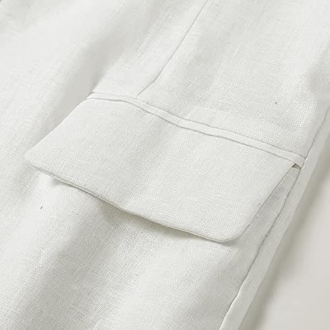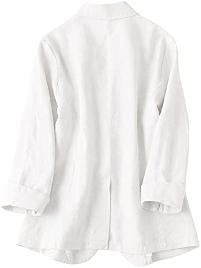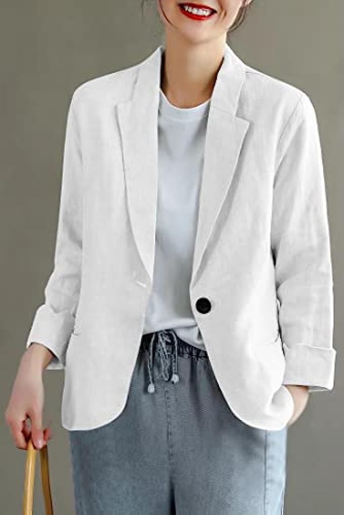 IDEALSANXUN Womens Cotton Linen Blazer Notch Lapel One Button Suit Coat Jackets
