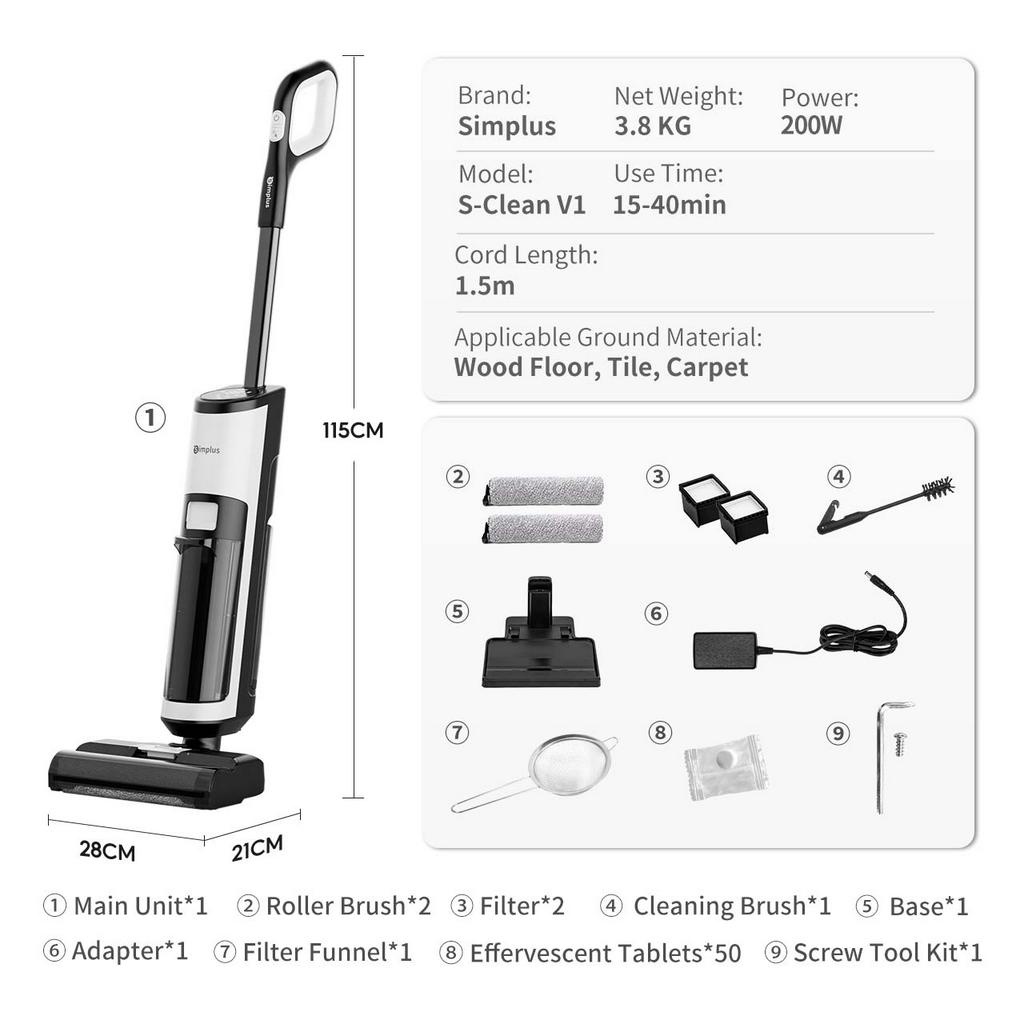 NEW Simplus Wet Dry Mop Vacuum Cleaner 3-In-1 Cordless S-Clean V1 Smart Floor Washer