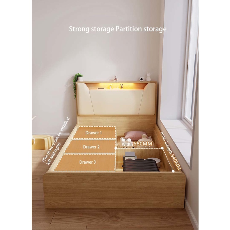 Pre order Storage Bed Modern And Minimalist Tatami Nordic Household Bedroom Small Room Space Saving 1.2M Single Bed