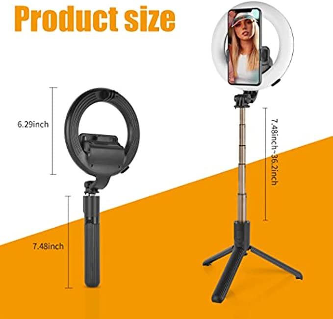 • 【Package Include】(1) 1 x 10.2” LED Ring Light, (2) 1 x Adjustable Tripod Stand, (3) 1 x Phone Holder, (4) 1 x Wireless Selfie Remote Control, (5) 1 x Product Manual.