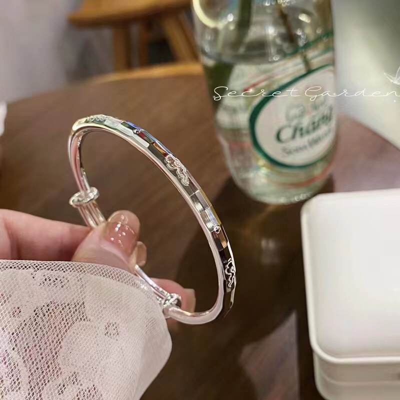 Round Stick Laser IDO Sliding Pull Bracelet Pure Silver 999 Shiny Surface