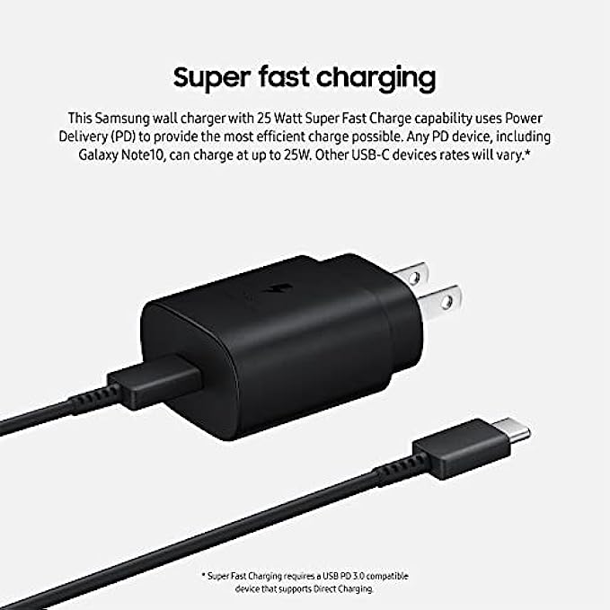 SAMSUNG 25W USB-C Super Fast Charging Wall Charger - Black (US Version with Warranty)