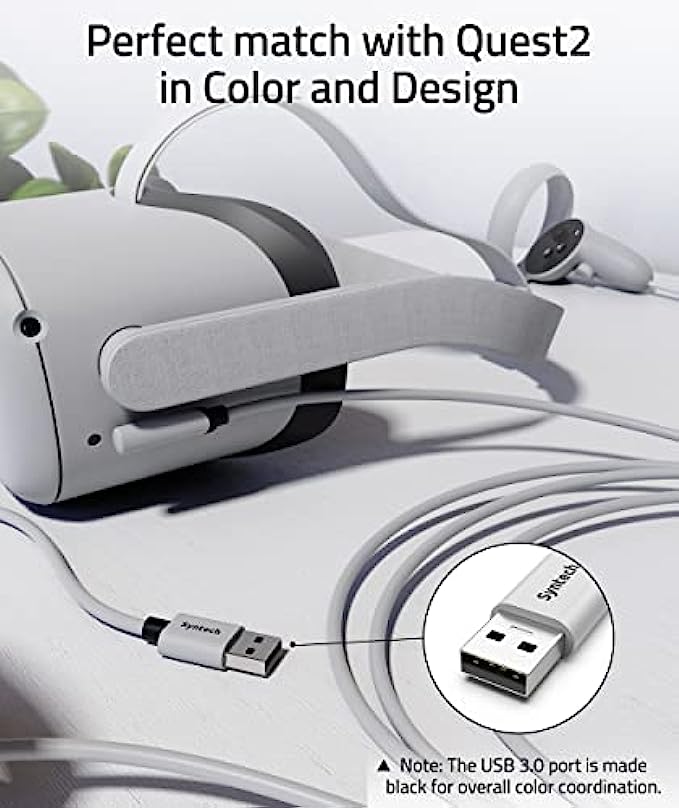• Super Cost-effective: Syntech Link Cable combining the two advantages of length and excellent connection performance will make you feel good value for money. As a reminder, the charging current will decrease as the cable length increases, so we do not recommend using this cable to charge your Quest2. Additionally, to enhance your VR experience, we do not recommend using this cable when the Quest2 is at a low battery level.