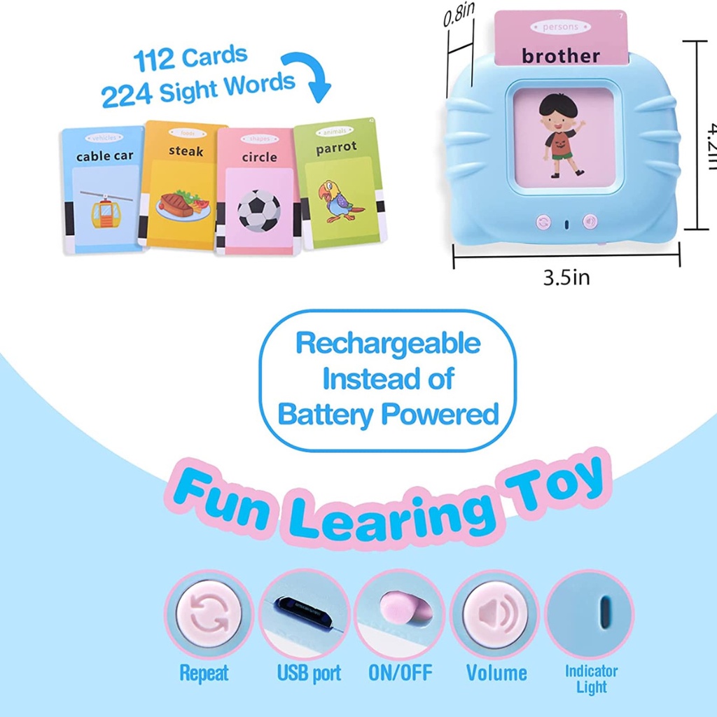 Talking Flash Cards Learning Toys for Age 2 -6| Baby | Montessori educational | LCD Writing Board | Birthday Gift