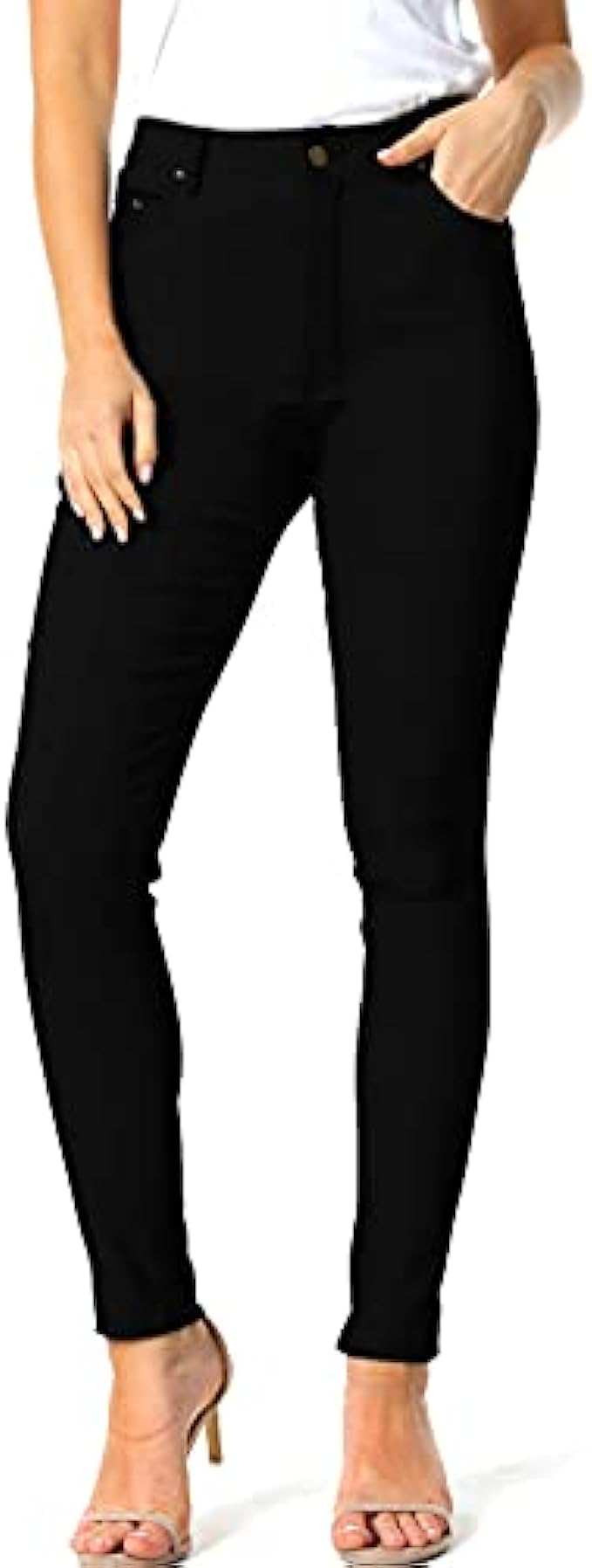 64% Rayon, 23% Nylon, 13% Spandex Button closure Machine Wash PREMIUM ULTRA STRETCH FABRIC: Fabric blended with spandex for stretch and comfort. STRETCHY VERSATILE PANTS: Wiggle into these super-stretch skinny pants and you'll be ready to conquer the world in comfort. They're perfect for pairing with a blouse and leather jacket, and easy enough to wear for weekend lounging. STYLE & FUNCTION: Mid-rise, Flattering skinny fit with functional front and back pockets, Zip-fly closure. ALL DAY COMFORT: Most comfortable Stretchy waist, providing all around ease & roominess, never too tight or restrictive. Perfect from office to happy hour. EASY CARE: Machine Washable