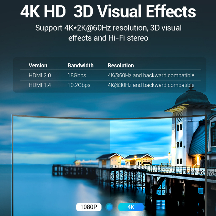 Vention HDMI Splitter 2 in 1 Bi-directional HDMI Switch 4K HDMI Adapter Converter For TV Box Laptop PS4 (With HDMI CABLE)