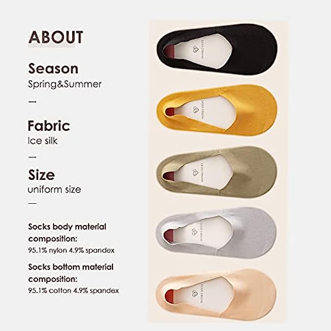 Elastic,Cotton Hand Wash Only ✬Cool & Dry: Skin-friendly and amazing smooth, our women no show socks comfort your foot. The cotton sole keeps your feet dry and cozy, and the top layer is as soft as silk. ✬Made by natural material:Made of 95.1% natural non-irritating combed cotton,they are comfortable and high elastic,Cool and refreshing ,easy to breathable perspiration. ✬Combed cotton:The use of high quality raw materials.The cotton is white and shiny, and the fiber is soft and long,uniform without impurities. ✬Reinforced heel:rubber strips covering the entire heel area.Protect the feet to be flexible and tight and not loose, no slipping or sliding. ✬Comfortable and high elastic:Solid tailoring is strong and wear-resistant,fashion and comfortable. 8 Pairs diffferent Random color Fit us women shoe size 6.5-8