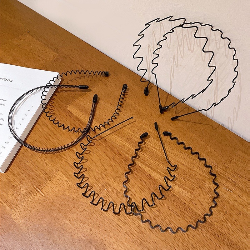 Anti-slip Unisex Black Metal Wave Headband Simple Sports Headband Men Women Hair Accessories