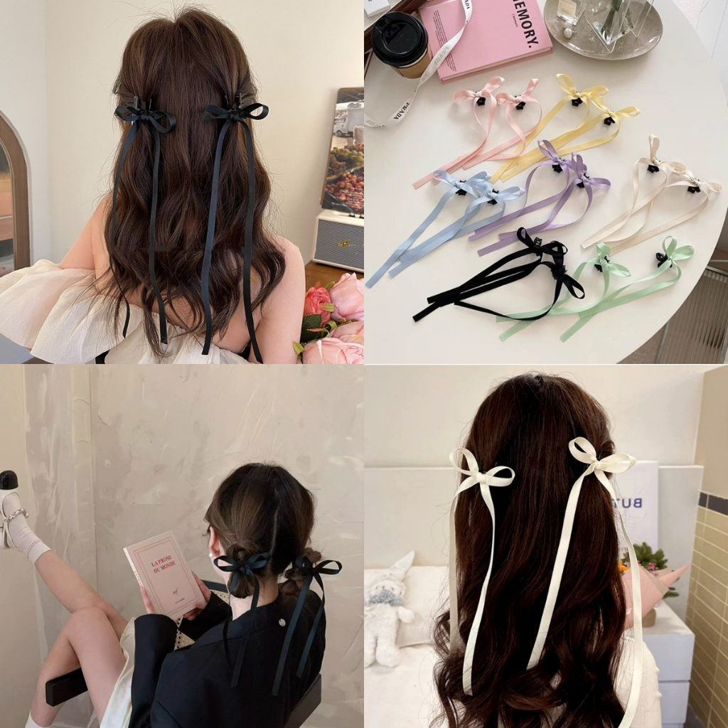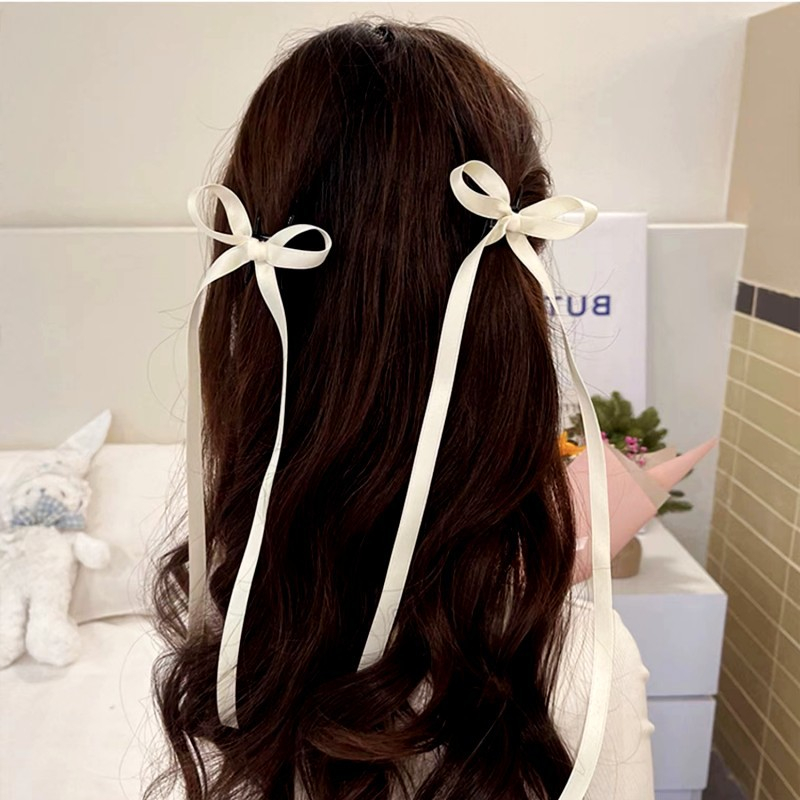 [Beautiful Magpie] 2pcs/set French ballet style bow ribbon small clip pure desire sweet girl high-end ribbon hair clip