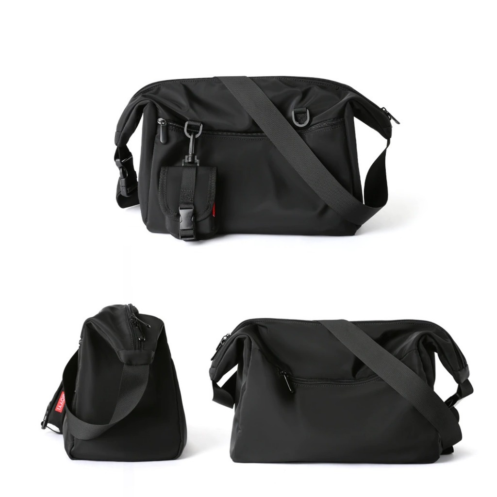 Waterproof no doubt.Loved the simple style. Extra pockets in the bag. The bag is lightweight. The capacity is big enough for me to fit umbrella, waterbottle and items I need for daily basis.
