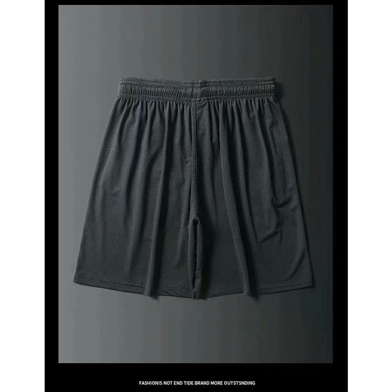 Ice Silk Shorts M-5XL Summer Super Breathable Casual Middle Pants Mesh Hollow Pocket Zipper Elastic Waist Quick-Drying Breathable Elastic Korean Version Moisture-Absorbent Wicking Quick-