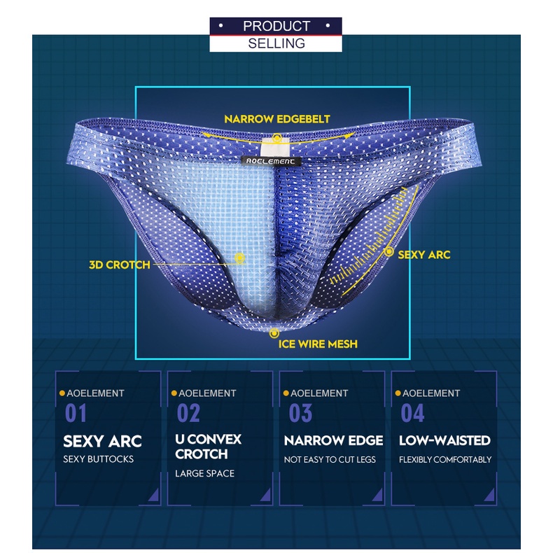 Men's Skinny Ice Silk Mesh Comfortable Briefs Sexy Youth Breathable Trendy Thin 130