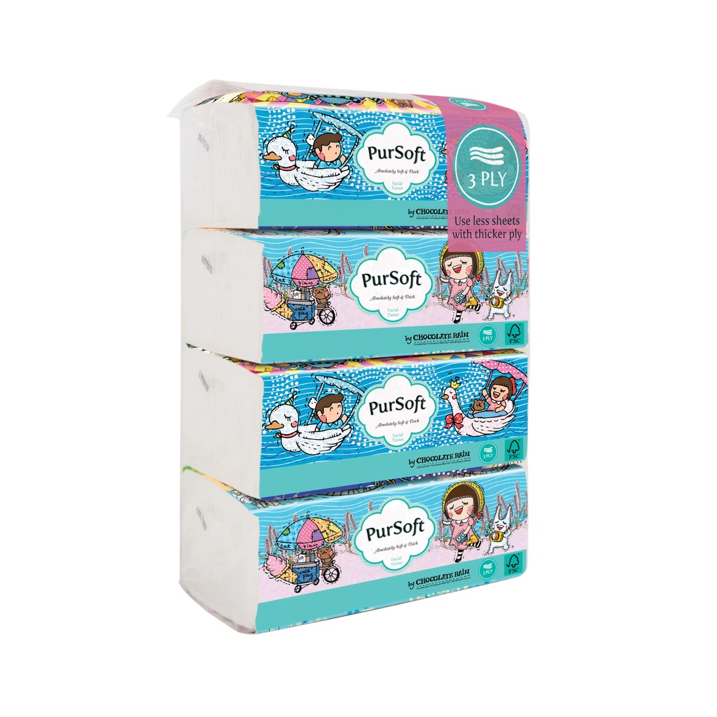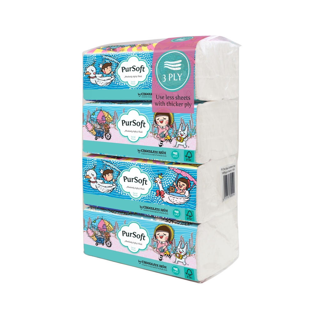 PurSoft 3ply Chocolate Rain Outdoor Soft Pack 120 sheets, Pack of 4