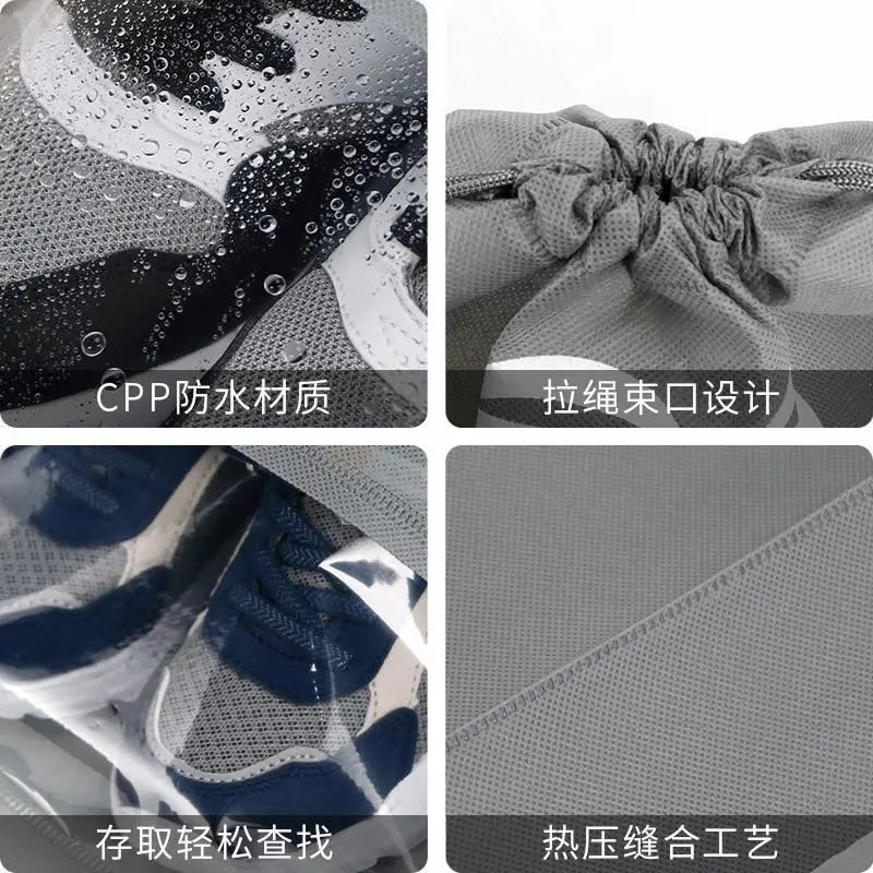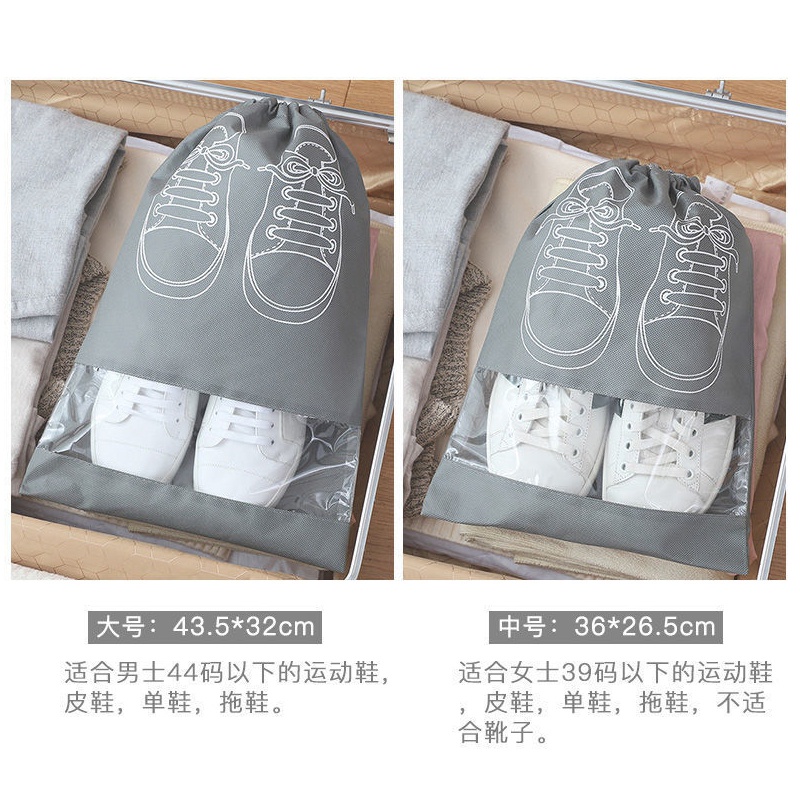 Performance:good Quality:acceptable Appearance:Nice Fast delivery! Man’s shoe bag is able to fit up to 2 pairs of shoes (my partner wears US 10.5). Same goes for women’s, fit my size 36/37 shoes. Better alternative compared to plastic bag which makes a hell lot of noise. Not waterproof, best for keeping it in your luggage only imo