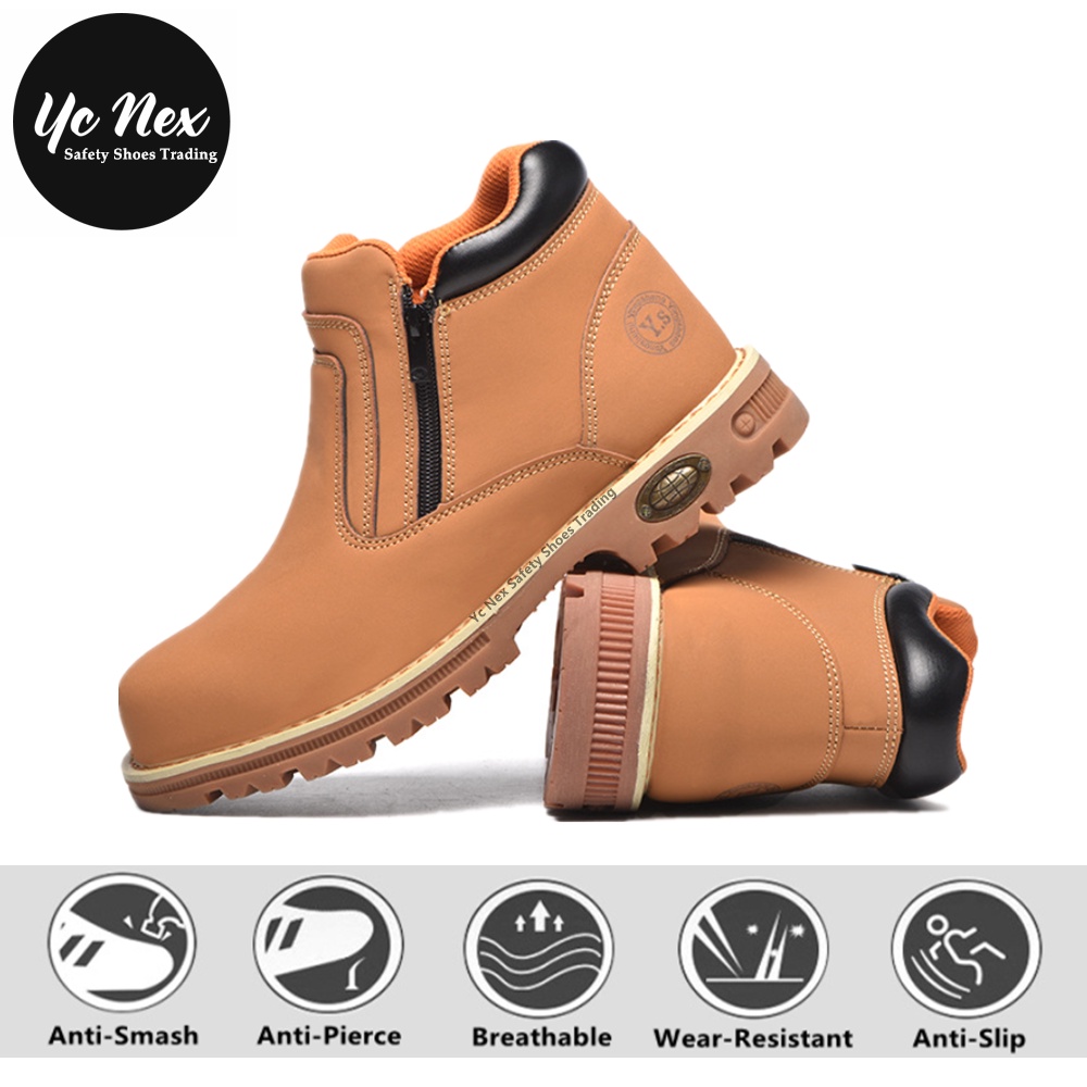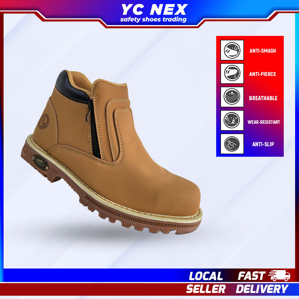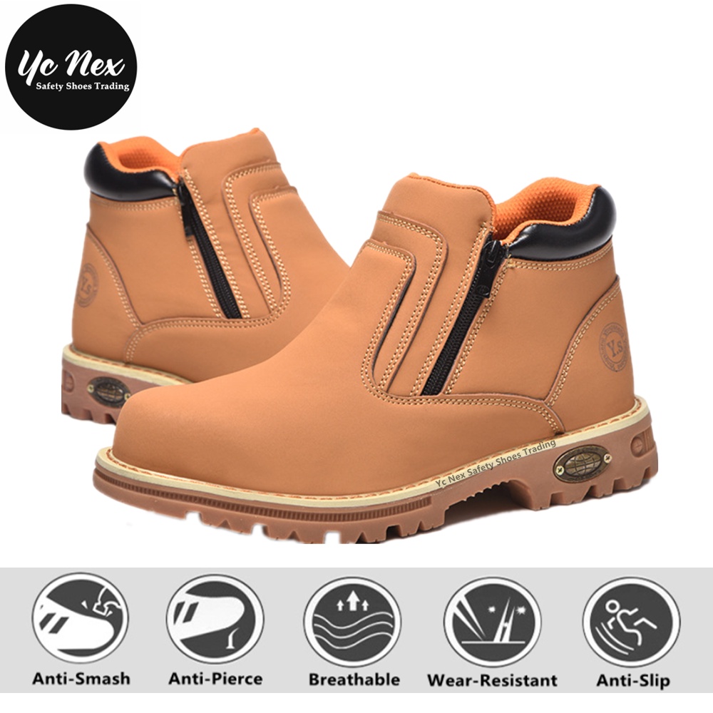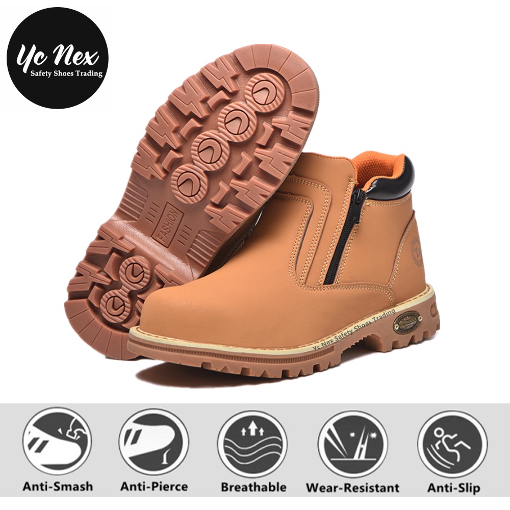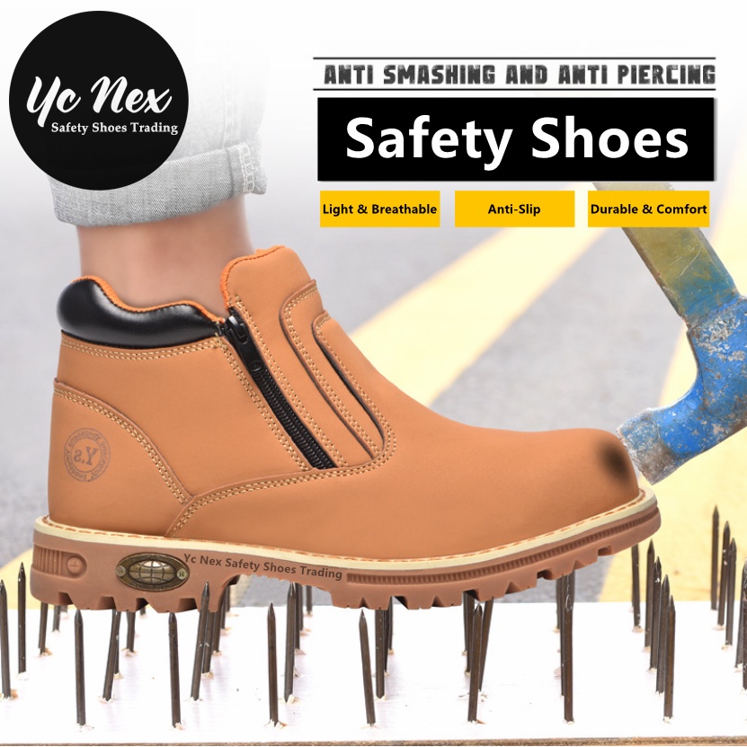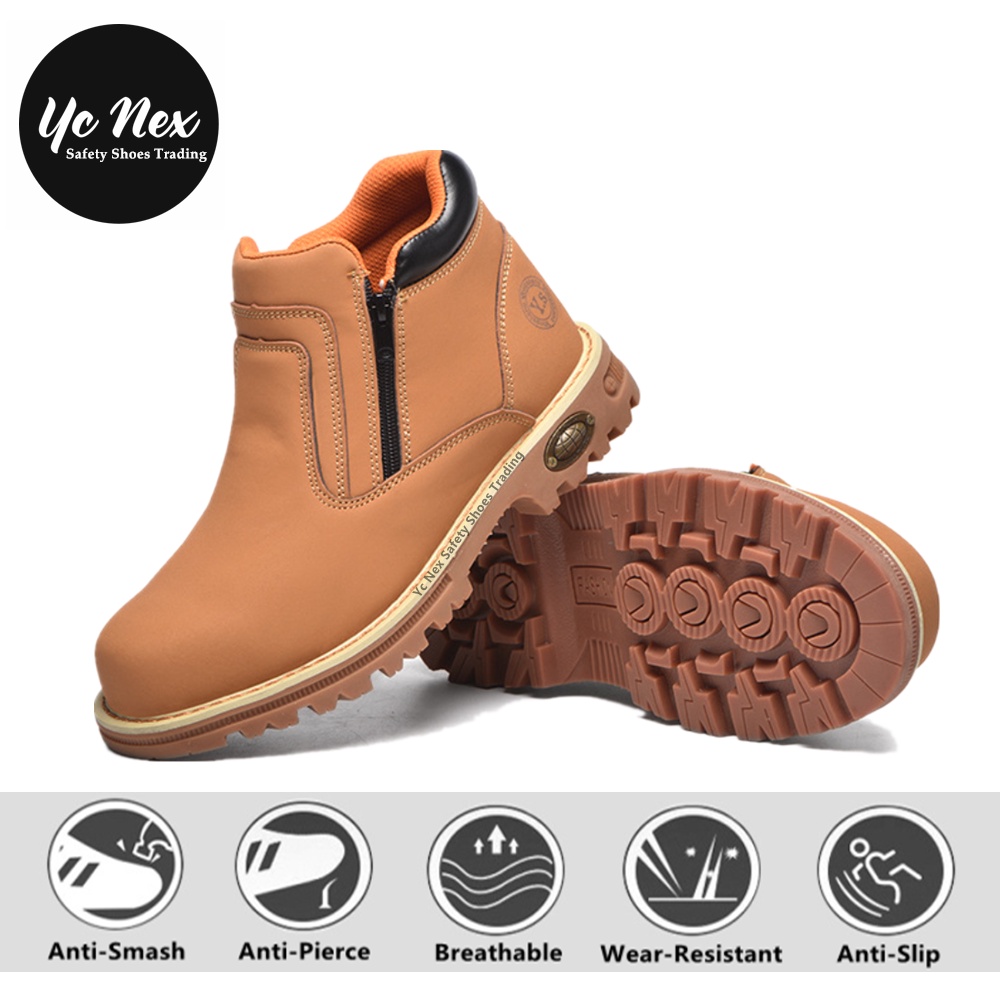 Colour:brown Material Quality:good This is my second time I bought the shoe from this shop. Love the design and colour very nice too. Good quality also. Not so heavy compare to other safety boots. Item arrived very fast below 1 week. Will buy again next time. Recommend.