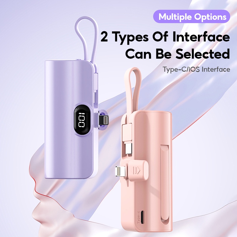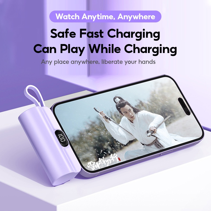 [SG Ready Stock] Mini Fast Charging Power Bank With Cable 5000mAh Portable Charger Small Powerbank For iPhone