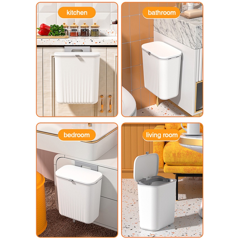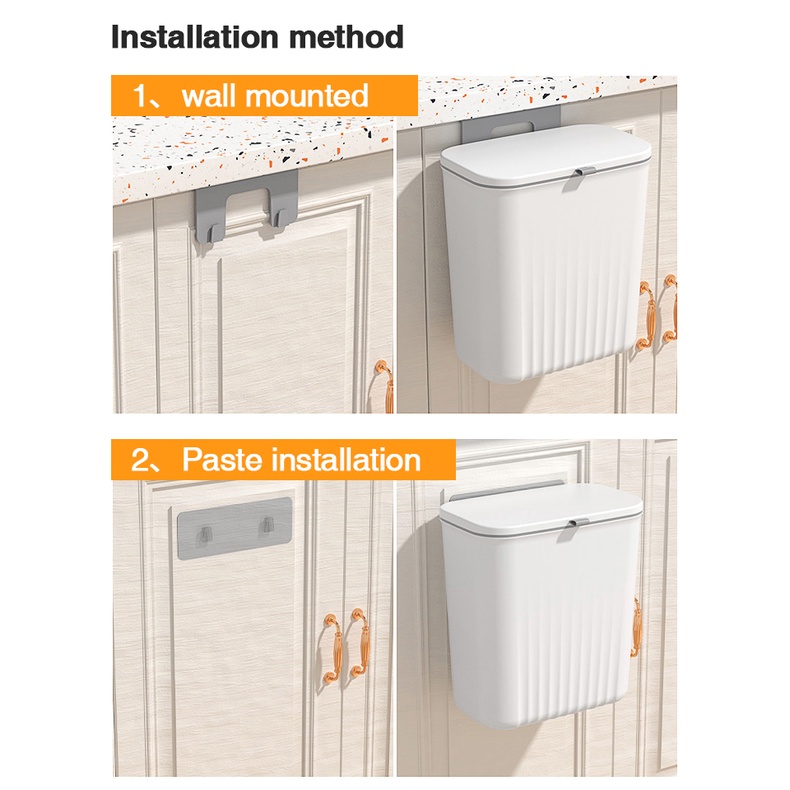 【SG Ready Stock】Hanging Waste Bin Plastic Kitchen Trash Bin With Lid