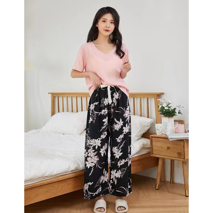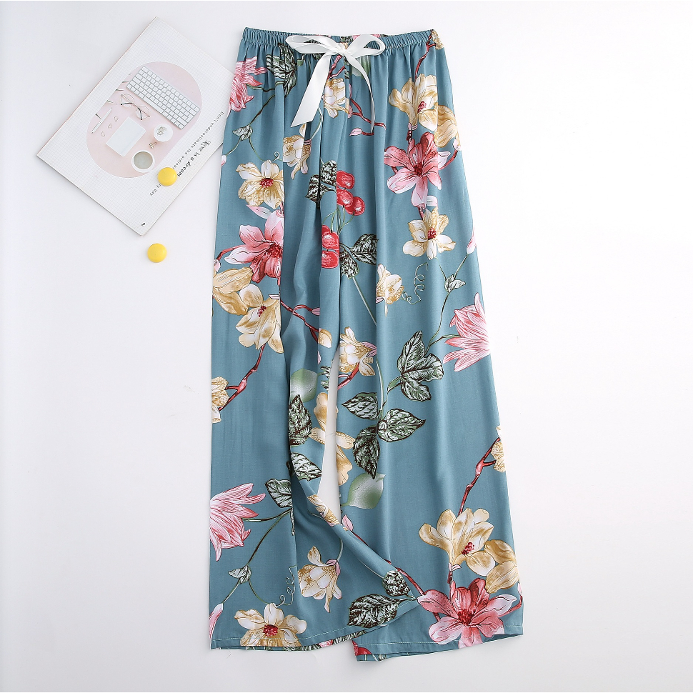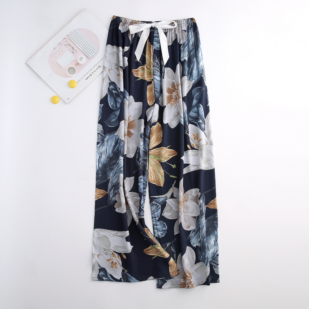 【?SG Seller】Long Summer cotton silk women's high waist wide leg pants indoor outdoor