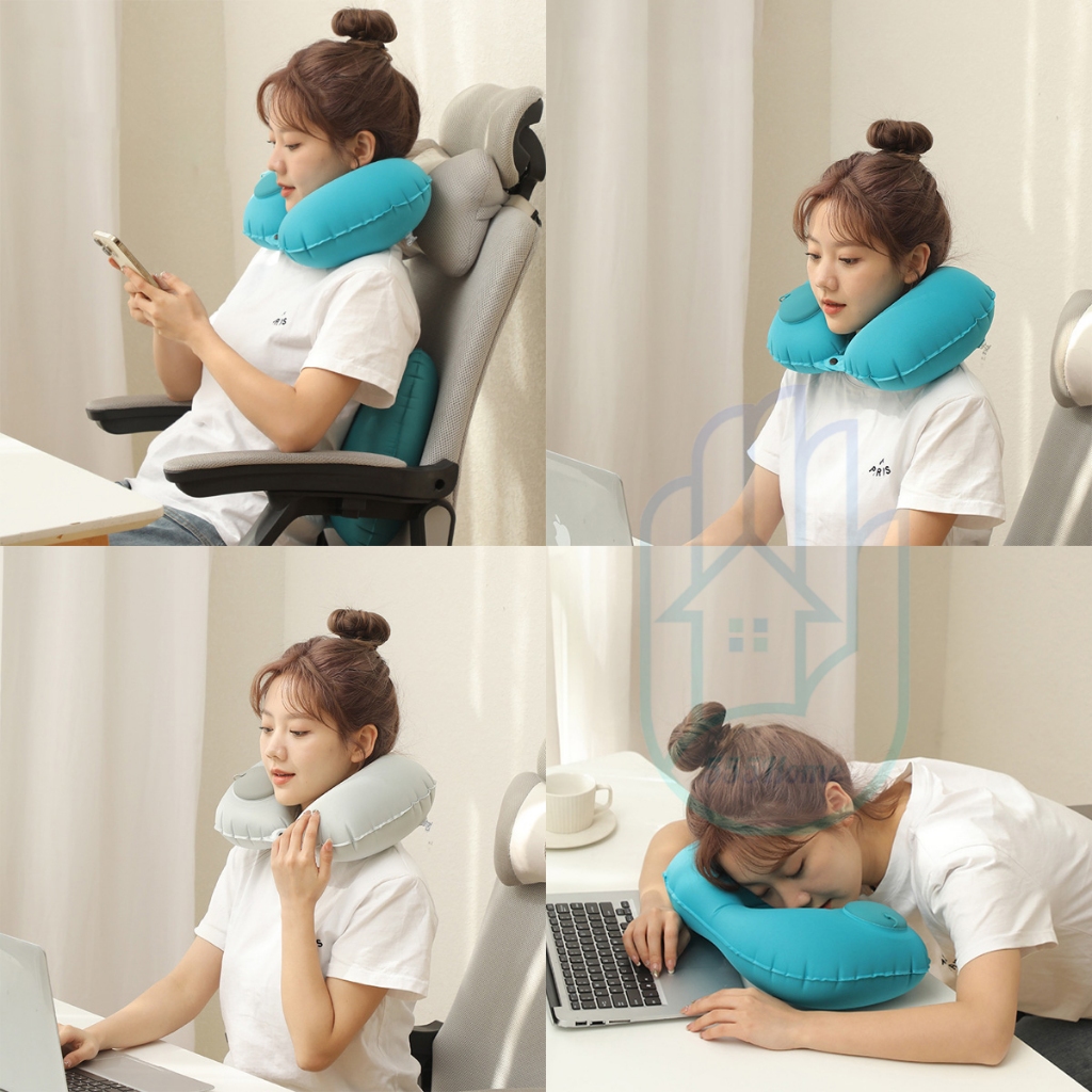 Material Quality:good Colour:nice Just collect in good condition, Ju-shape lnfratable travel pillow.brought two pieces Gray and blue..is good for travel long hours.. like it and very light weight too