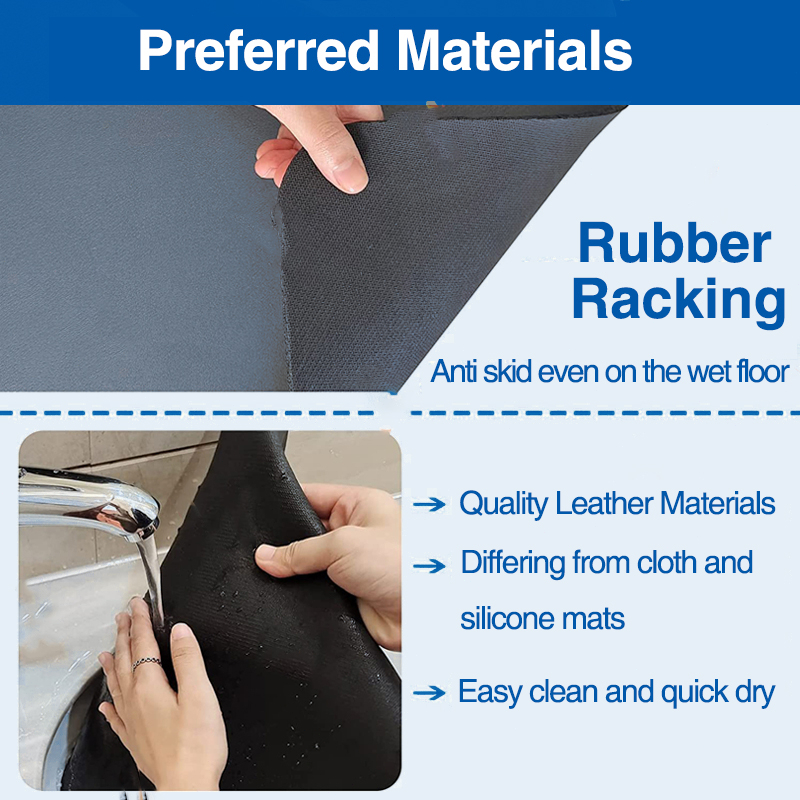 Quality:good absorbent Performance:great Appearance:black Good absorbent mat, been using it for a few days. So far so good. Not sure if it’s required to wash after multiple uses or too much splashes of water. But I would say it’s a good buy. Fast delivery local delivery too.